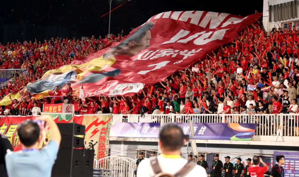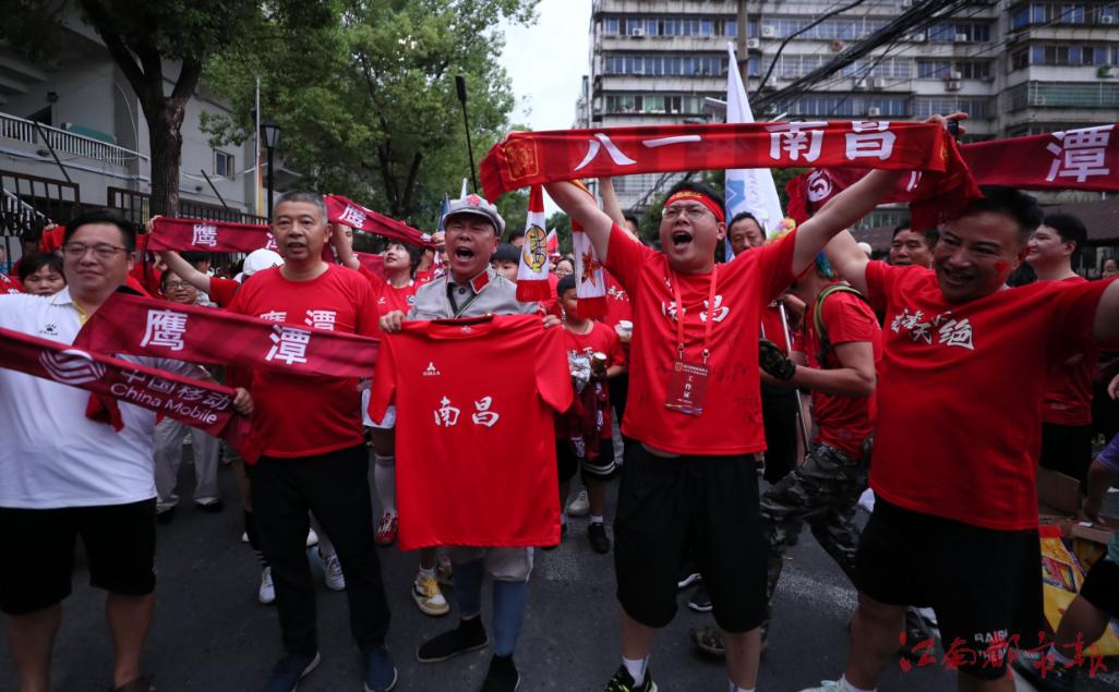 江南都市報(bào)訊 全媒體記者許南平攝影報(bào)道:“歡迎鷹潭”“感謝南昌”“歡迎吉安”“謝謝贛州”……既是對(duì)手,也是朋友,贛超第八輪賽前,各個(gè)主場球迷列隊(duì)歡迎、贈(zèng)送伴手禮、友好對(duì)話,這份跨越賽場的暖心互動(dòng)贏得全場掌聲,讓緊張的賽事多了份溫情。在南昌,洪城球迷協(xié)會(huì)組織數(shù)百名球迷在大巴車下車點(diǎn)敲鑼打鼓迎接,早早準(zhǔn)備了球衣、南昌拌粉、白糖糕、紅牛飲料、牛奶、扇子等小禮品,沿途贈(zèng)送給600余名鷹潭球迷。八月的贛鄱大地,熱浪翻涌,卻遠(yuǎn)不及“贛超”帶來的激情。廚師、教師、工人、學(xué)生組成的城市英雄,用情懷點(diǎn)燃綠茵場,5場比賽場場精彩。10萬名觀眾觀看賽事,吶喊聲、助威聲震徹夜空,再次創(chuàng)下贛超觀賽紀(jì)錄。曾經(jīng)在歐洲五大聯(lián)賽中見過的沸騰場景,如今在贛超頻繁上演。這是足球的魅力,也是“贛超”的魔力。